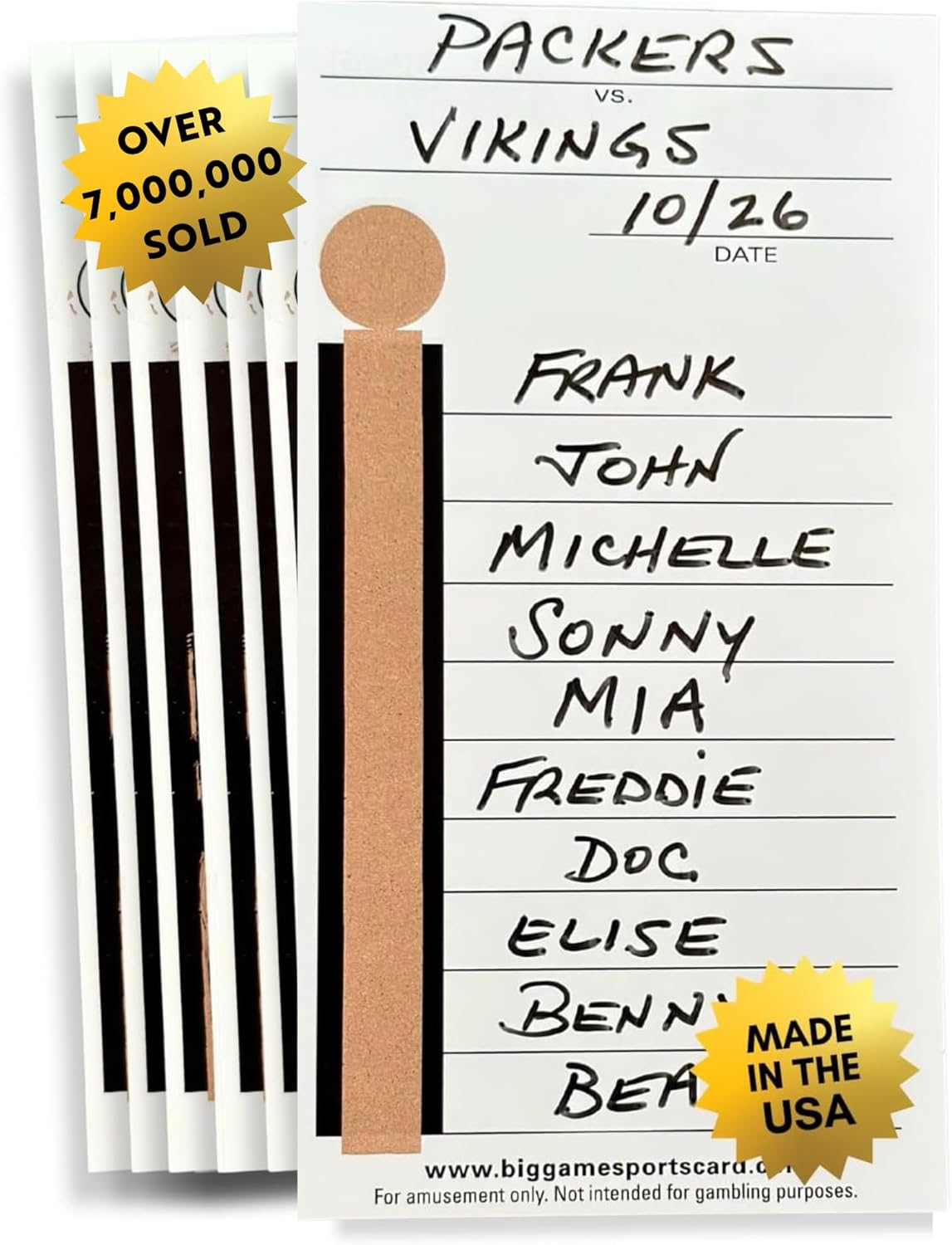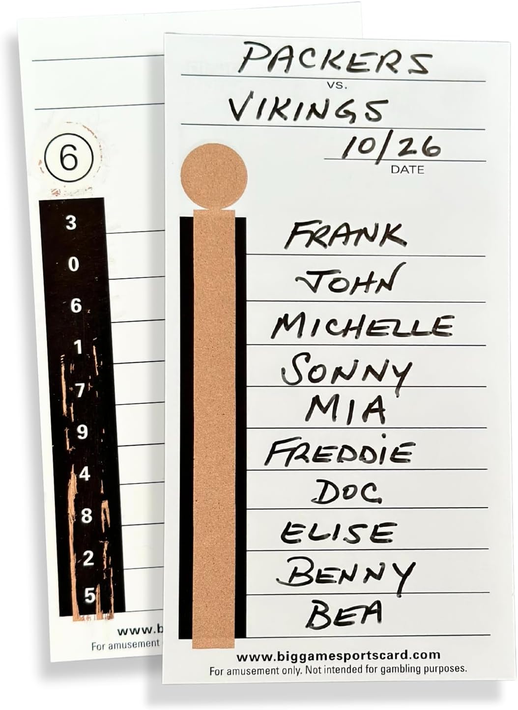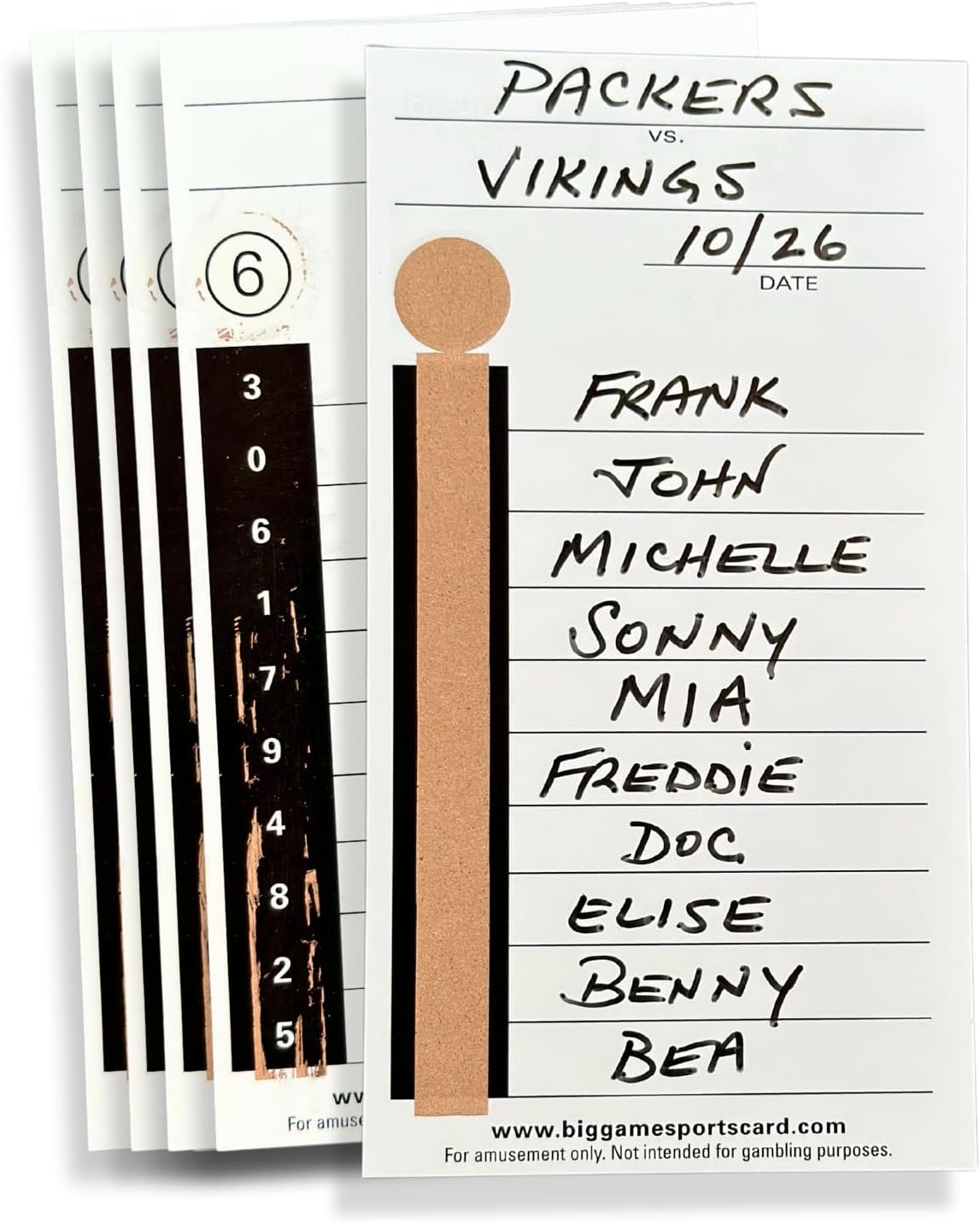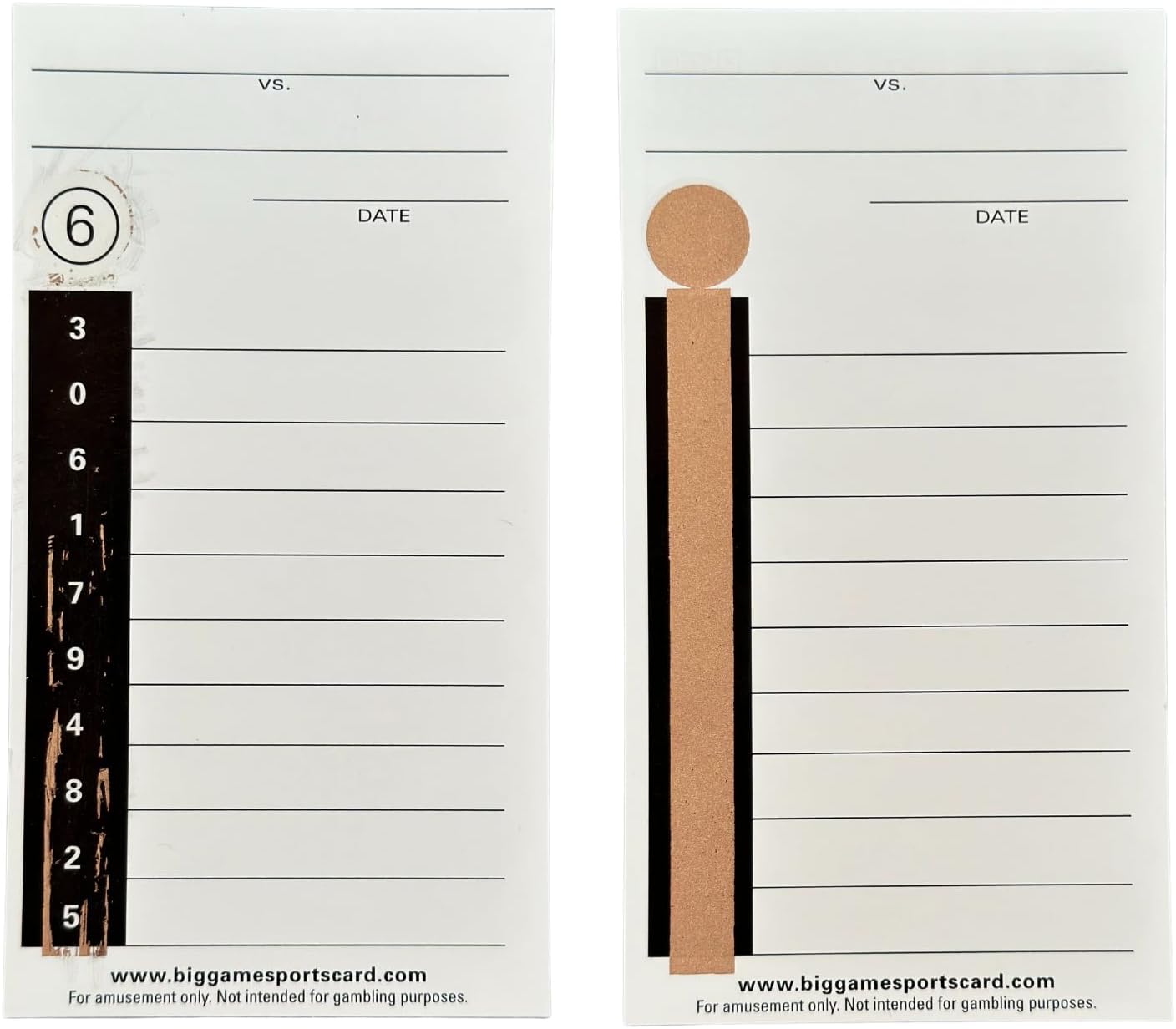 These are the original ten liners that have been used for decades. Perfect for betting on football games and NASCAR. The Cards Have a nice gloss paper and they have very clear numbers. The Cards Are Lightly Dusted So That The Tape 100 CARDS TO A PACK Comes Off Nicely to reveal the winner. AGAIN : THESE ARE THE ORIGINAL TEN LINER CARD. THEY ARE A GLOSSY CARD WHICH IS LIGHTLY DUSTED WITH A BLACK STRIP THAT YOU PEEL OFF TO REVEAL THE WINNERS.
