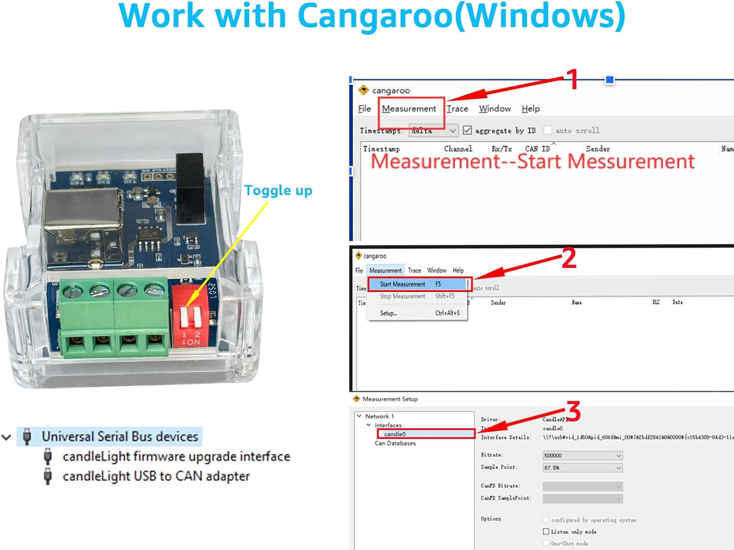 Built on open-source Canable 2.0 hardware; flash firmware via Cangaroo software to unlock full CAN FD functionality instantly.