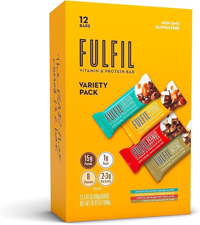 FULFIL Protein Snack Bars, Best Sellers Variety Pack, Gluten Free with 15g Protein, Pantry Staples, 12 Count