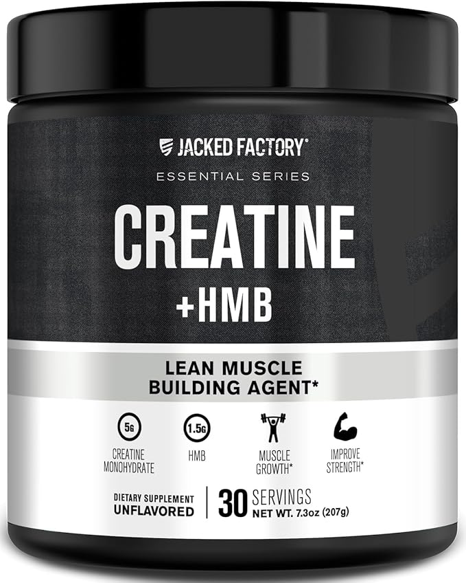 Jacked Factory Creatine HMB Powder Supplement with Creatine Monohydrate & HMB for Men & Women for Muscle Growth, Increased Strength, Enhanced Energy – 30 Servings, Unflavored