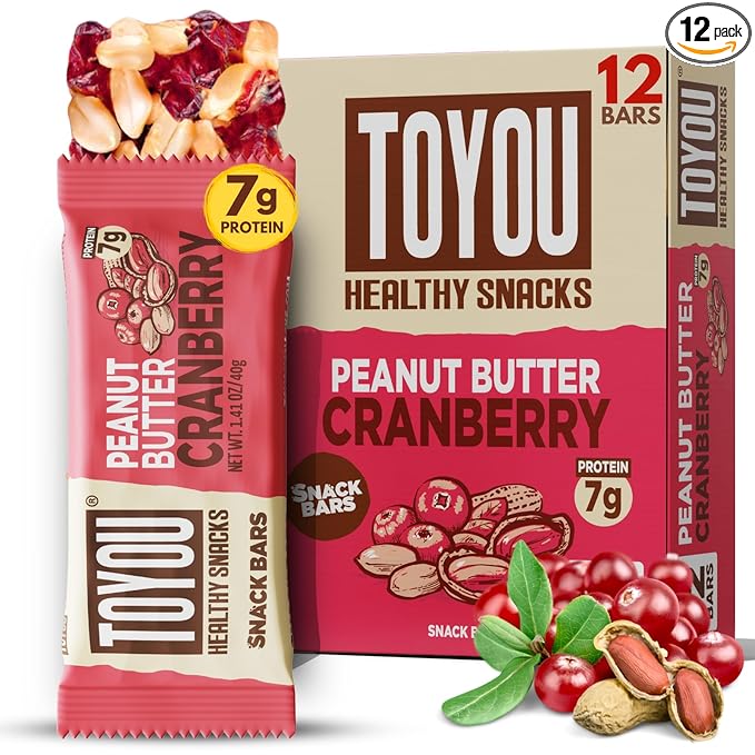ToYou Chewy Fruit and Nut Bars – Healthy Protein Snacks | Peanut Butter Cranberry – 1.41 Ounce (Pack of 12) | Soft Chewy, Vegan, Fiber-packed Granola Bars for Adults and Kids, Made with Natural Ingredients