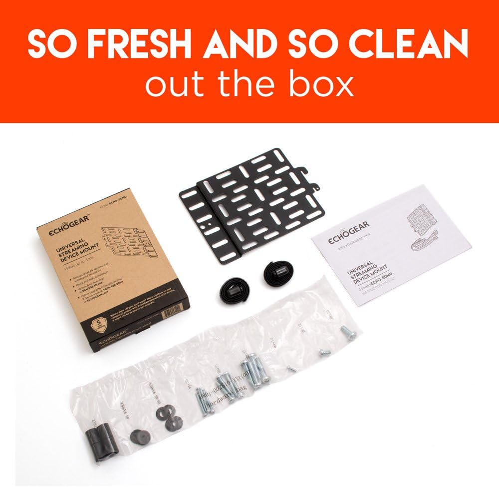 So you got rid of cable (bravo fellow cord cutter), but now your media streaming device is still taking up space on a shelf below your TV. With the ECHOGEAR Streaming Device Mount, you can simply and securely attach your device to the back of the TV out of sight. With a 3lb weight capacity and universal design, this mount can support almost any device.