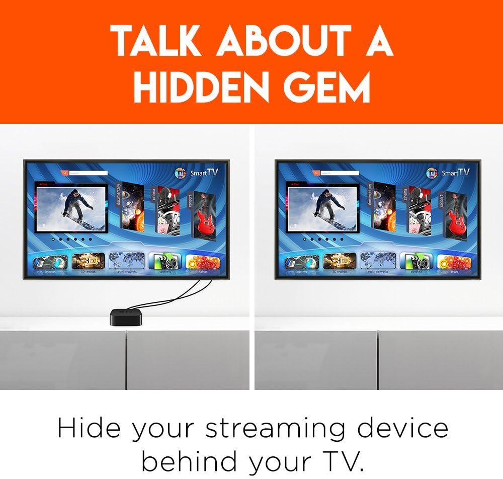 Having universal streaming device mount is the best option for many reasons. Let’s say you buy an Apple TV with a mount made specifically for this year’s Apple TV model. Cool, right? Well, what happens when you want to upgrade to the newest model or switch to a Roku and it’s a different size? That means buying another mount, throwing the old one away, and installing again. Talk about a pain.